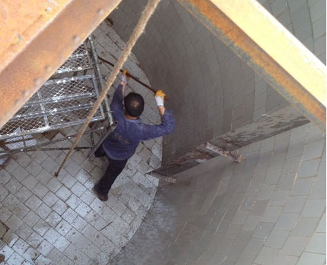 罐內(nèi)粘貼耐酸磚